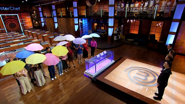เมื่อกรรมการเรียกผู้เข้าแข่งขันไปยืนพร้อมให้กับกางร่มซึ่งก็ทำเอาแต่ละคนต่างก็ลุ้นกันสุด ๆ ว่าจะเจอกับวัตถุดิบอะไร จากนั้นวัตถุดิบก็ถูกเทลงมาดั่งสายฝนที่โหมกระหน่ำ จนทำเอาทุกคนถึงกับร้องเสียงหลง!! เพราะไม่คาดคิดว่าจะมากมายขนาดนี้ แถมเป็นวัตถุดิบที่ดูเรียบง่ายเจอะเจอแทบทุกวัน แต่การจะนำเอาวัตถุดิบนี้มารังสรรค์เป็นเมนูจานเด็ดไม่ใช่เรื่องง่าย เรียกว่าเป็นอีกโจทย์ที่กรรมการเลือกมาเพื่อทดสอบผู้เข้าแข่งขันว่ามีความรู้ความสามารถเพียงพอที่จะได้รับผ้ากันเปื้อนหรือไหม แม้ผู้เข้าแข่งขันจะต้องเจอกับบททดสอบที่ยากหรือถูกบีบคั้นจนหลายคนต้องน้ำตาร่วง แต่ทุกคนต่างก็เดินหน้าสู้แบบยิบตา สุดท้ายแล้วใครจะก้าวผ่านโจทย์แห่งความท้าทายครั้งนี้ไปได้พร้อมคว้าผ้ากันเปื้อนเป็นตัวจริงได้สำเร็จ