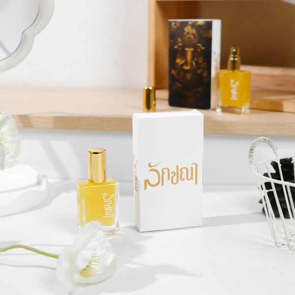 นอกจากต่างหูแล้วก็จะมีกำไลพระแม่ลักษมี ซึ่งดีไซน์ออกมาเป็นรูปดอกบัว มีทั้ง Pink gold และ White Gold เช่นกันกับต่างหู ใส่ได้ทั้งผู้หญิงและผู้ชาย หลายคนที่ได้ไปบูชาไปแล้วกลับมาบอกเป็นเสียงเดียวกันว่าปังมาก อีกหนึ่งอย่างที่อุ้มอยากแนะนำก็คือน้ำหอม สำหรับบางคนที่ไม่สะดวกจุดกำยาน ก็สามารถบูชาน้ำหอมนำกลับไปฉีดหรือพรมที่องค์เทพได้ หรือ อาจจะซื้อถวาย และนำกลับมาฉีดตัวเพื่อให้เสริมสิริมงคล สร้างสเน่ห์ให้ตัวเองก็ได้เช่นกันค่ะ เครื่องประดับของแบรนด์ลักขณานอกจากจะช่วยเติมเต็มลุคให้สวยแล้ว ยังเสริมความมั่นใจให้กับผู้ใส่ เป็นอีกไอเทมที่ช่วยเสริมโชคด้านต่าง ๆ ทั้งเรื่องการงาน การเงิน ความรักด้วยค่ะ