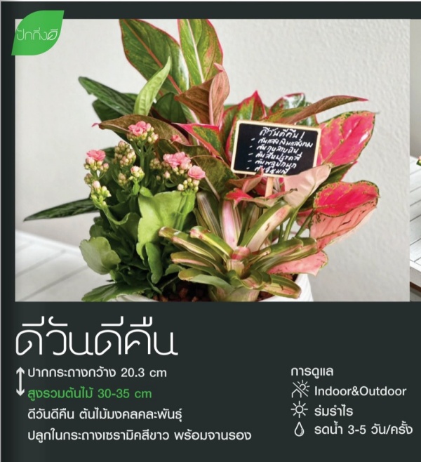 ของขวัญจากต้นไม้หลากหลายประเภท โดยผ่านการคัดเลือกพันธุ์ไม้ที่รูปทรงสวยงาม มีการตกแต่งบนกระถางอย่างโดดเด่นและสร้างสรรค์ เหมาะสำหรับการมอบเป็นของขวัญให้กันในโอกาสพิเศษต่าง ๆ ซึ่งผู้รับสามารถนำไปปลูกต่อหรือใช้วางประดับ เพื่อตกแต่งบ้านหรือออฟฟิศได้เป็นอย่างดี อีกทั้งความหมายของต้นไม้แต่ละประเภท อาทิ วาสนานางฟ้า กวักมรกต แก้วสารพัดนึก หยกนำโชค รวยทรัพย์ โชคเก้าชั้น และยังสามารถเลือกเป็นของขวัญจากต้นไม้มงคลคละพันธ์ อาทิ ฤกษ์งามยามดี นางกวัก รวยไม่รู้รวย เสริมสร้างทรัพย์ สมใจนึก ดีวันดีคืน ที่จะดีไซน์ได้หลากหลายรูปทรง หลายวัสดุ