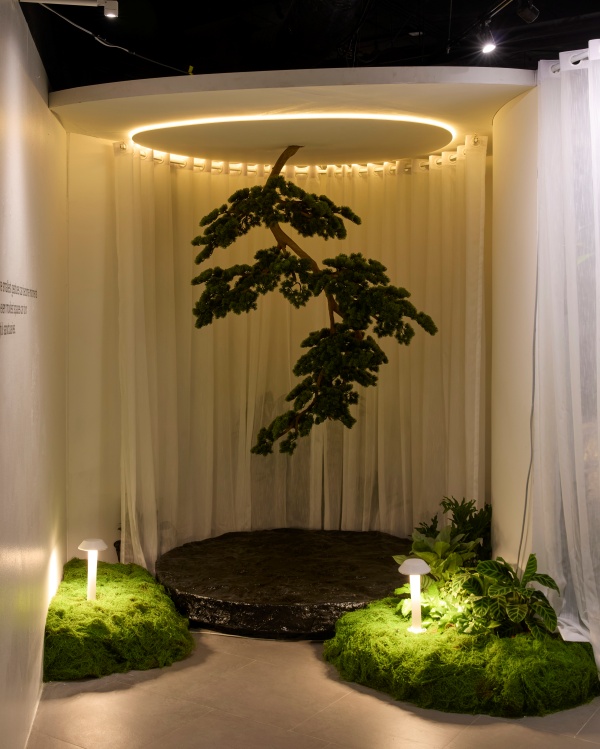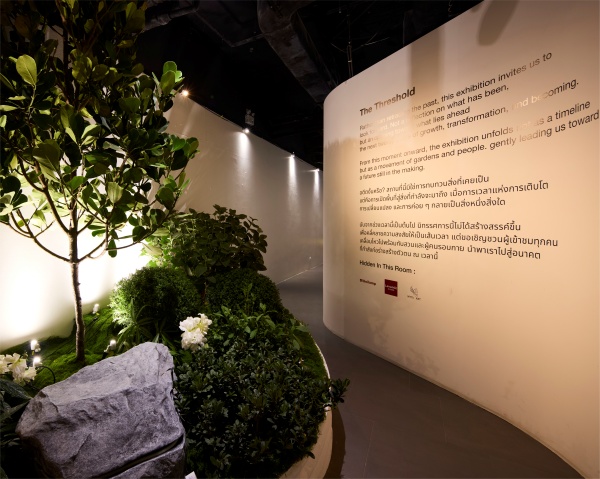 ภายใต้คอนเซปต์ “The 20 Years Ahead : Future of Living begin in the garden” นิทรรศการถูกออกแบบให้เป็น “The Living Exhibition” ที่ผู้ชมจะได้สัมผัสประสบการณ์ผ่าน 5 สวนมหัศจรรย์ ซึ่งถูกร้อยเรียงเรื่องราวให้เหมือนการเดินทางของอารมณ์ เริ่มต้นด้วยการปรับจังหวะชีพจรให้ช้าลงจากโลกภายนอกที่วุ่นวายเข้าสู่ความสงบนิ่ง ในห้องที่ 1 “Garden of Stillness” พื้นที่แห่งความสมดุลเงียบสงบที่ชวนให้ผู้คนกลับมาสำรวจใจตนเอง ก่อนจะก้าวสู่ห้องที่ 2 “Garden of Connection” ที่เปิดประสาทสัมผัสทั้ง 5 ให้สื่อสารกับธรรมชาติอย่างลึกซึ้ง ผ่านผิวสัมผัสและเสียงของโลกใบนี้ ไฮไลต์ที่เปรียบเสมือนหัวใจของงานคือ ห้องที่ 3 “Garden of Motion” พื้นที่ที่สะท้อนสัจธรรมของธรรมชาติผ่านแสงเงาและการเปลี่ยนแปลงของธรรมชาติไหลผ่านตัวไปอย่างแผ่วเบา และเปลี่ยนจาก “กลางวัน” เป็น “กลางคืน”
