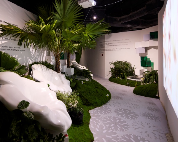 โอบล้อมด้วยบรรยากาศกึ่งฝันกึ่งจริง สวนที่ถูกห่อหุ้มด้วยชั้นโปร่งแสง แสงลอดผ่านอย่างอ่อนโยน สื่อถึงความทรงจำที่ค่อยๆ เลือนหาย เหลือไว้เพียงตะกอนของความสงบที่ลอยละล่องอยู่ในอากาศ ก่อนจะปิดท้ายด้วยห้องที่ 5 “Garden of Imagination” พื้นที่ปลายทางที่ผสมผสานความแปลกใหม่ของศิลปะ เทคโนโลยี และธรรมชาติเข้าด้วยกันอย่างกลมกลืน เพื่อตั้งคำถามและเปิดพื้นที่ให้ผู้ชมได้ขบคิดถึงความเป็นไปได้ใหม่ๆ ของคำว่า “สวน” ในโลกอนาคต