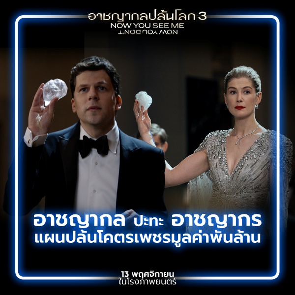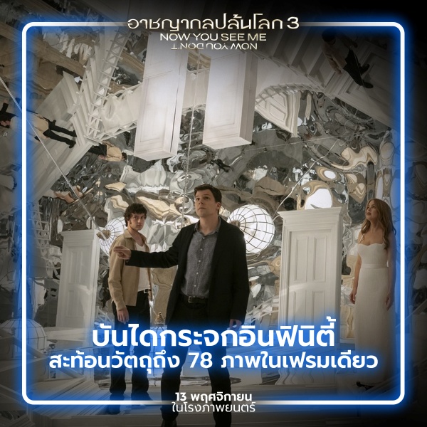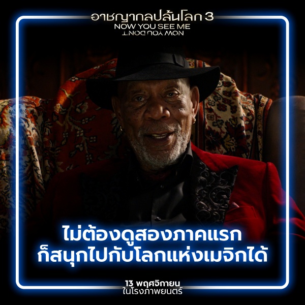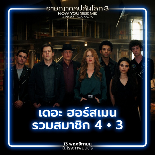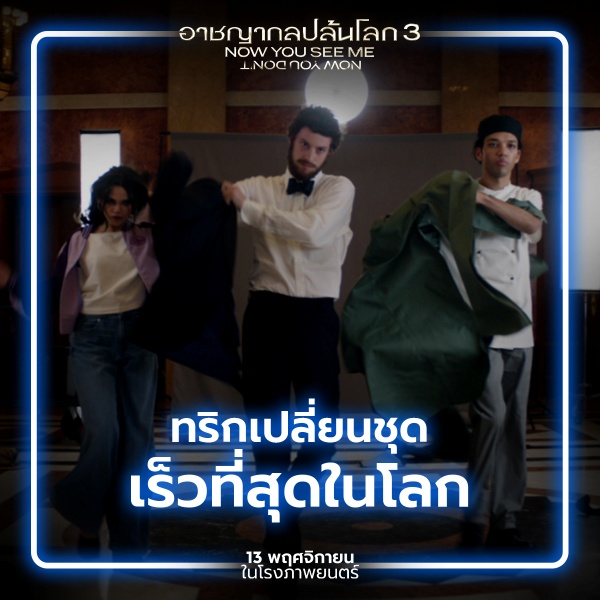 “จตุรอาชา” กลับมาแล้ว พร้อมแท็กทีม “นักมายากลรุ่นใหม่” ที่จะมาแสดงกลสุดล้ำ หักมุมเกินคาดเดา และใช้เวทมนตร์แบบเรียลไทม์อย่างที่ไม่เคยปรากฏในโลกภาพยนตร์มาก่อน กับ “ภารกิจโจรกรรม” ครั้งใหญ่ที่สุดในประวัติศาสตร์ เพื่อเอาคืน “เหล่าวายร้าย” อย่างสาสมใน Now You See Me: Now You Don’t อาชญากลปล้นโลก 3” มันส์ก่อนอเมริกา 13 พฤศจิกายนนี้ ในโรงภาพยนตร์