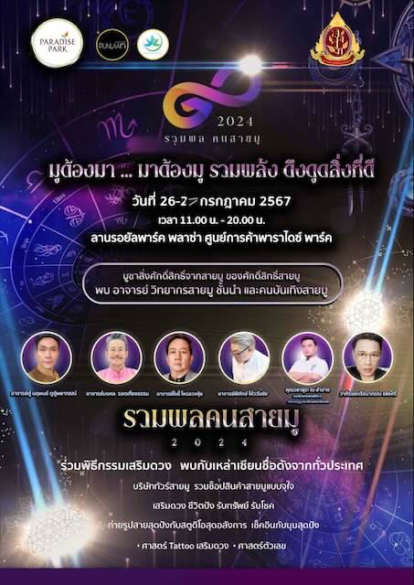 ขอเชิญชม ช๊อป งาน “รวมพล คนสายมู 2024” มูต้องมา…มาต้องมู ณ ลานรอยัลพาร์ค พลาซ่า ชั้น 1 ศูนย์การค้าพาราไดซ์ พาร์ค